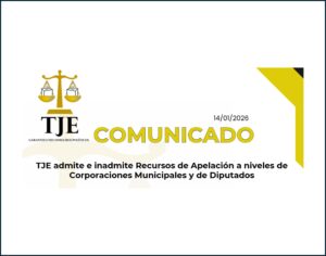 TJE admite e inadmite Recursos de Apelación a niveles de Corporaciones Municipales y de Diputados 14 enero, 2026 Leer más »